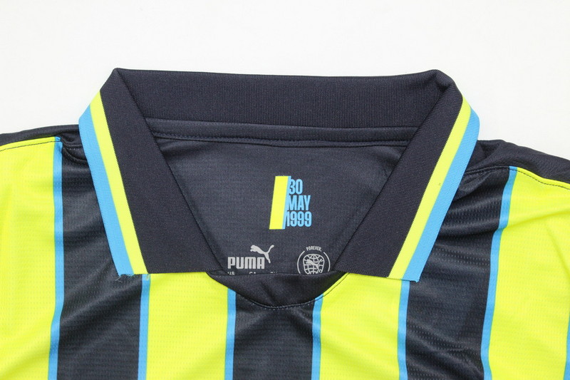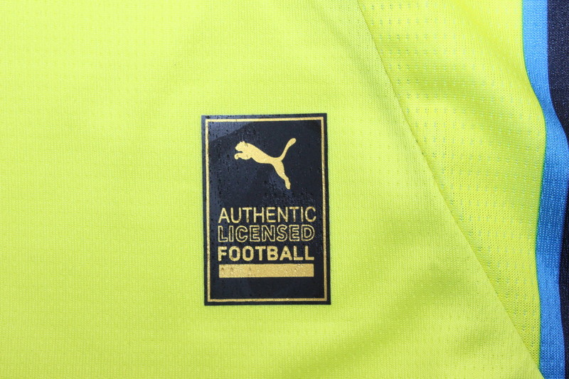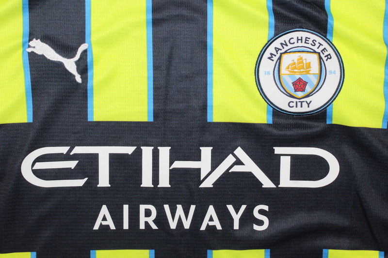 La nueva camiseta del Manchester City para la temporada 2024-2025 ha sido oficialmente lanzada por Puma. La camiseta local mantiene el clásico color azul cielo, acompañado de detalles en azul marino y logotipos en blanco. Lo que destaca en este diseño son el cuello y los puños de las mangas, que presentan un gráfico inspirado en grafitis con el código de área «0161» como homenaje a la región de Manchester