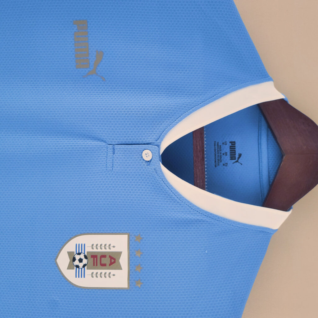 - Eliminatorias y Torneos: La camiseta fue utilizada en las eliminatorias para la Copa Mundial de la FIFA 2022 y en otros torneos internacionales, donde la selección uruguaya compite con gran tradición y determinación.