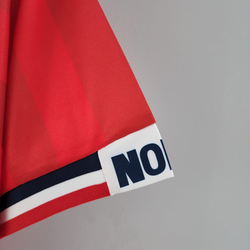 - Participación en el Mundial: Esta camiseta fue especialmente notable porque Noruega la usó durante la Copa del Mundo de la FIFA 1998 en Francia. Fue solo la tercera participación de Noruega en un Mundial (las anteriores fueron en 1938 y 1994).